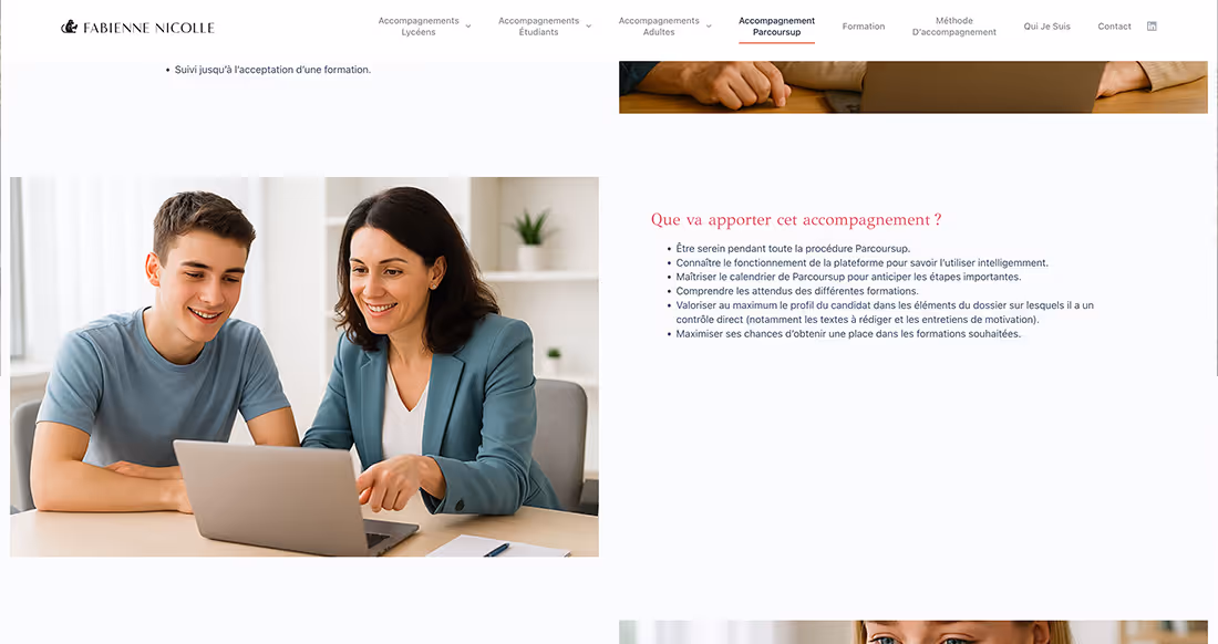 Réalisation du site sous WordPress, avec un design épuré et une navigation intuitive. Pensé pour l’utilisateur, le site offre une expérience fluide sur tous les supports (desktop, mobile, tablette), avec une hiérarchie claire de l’information.